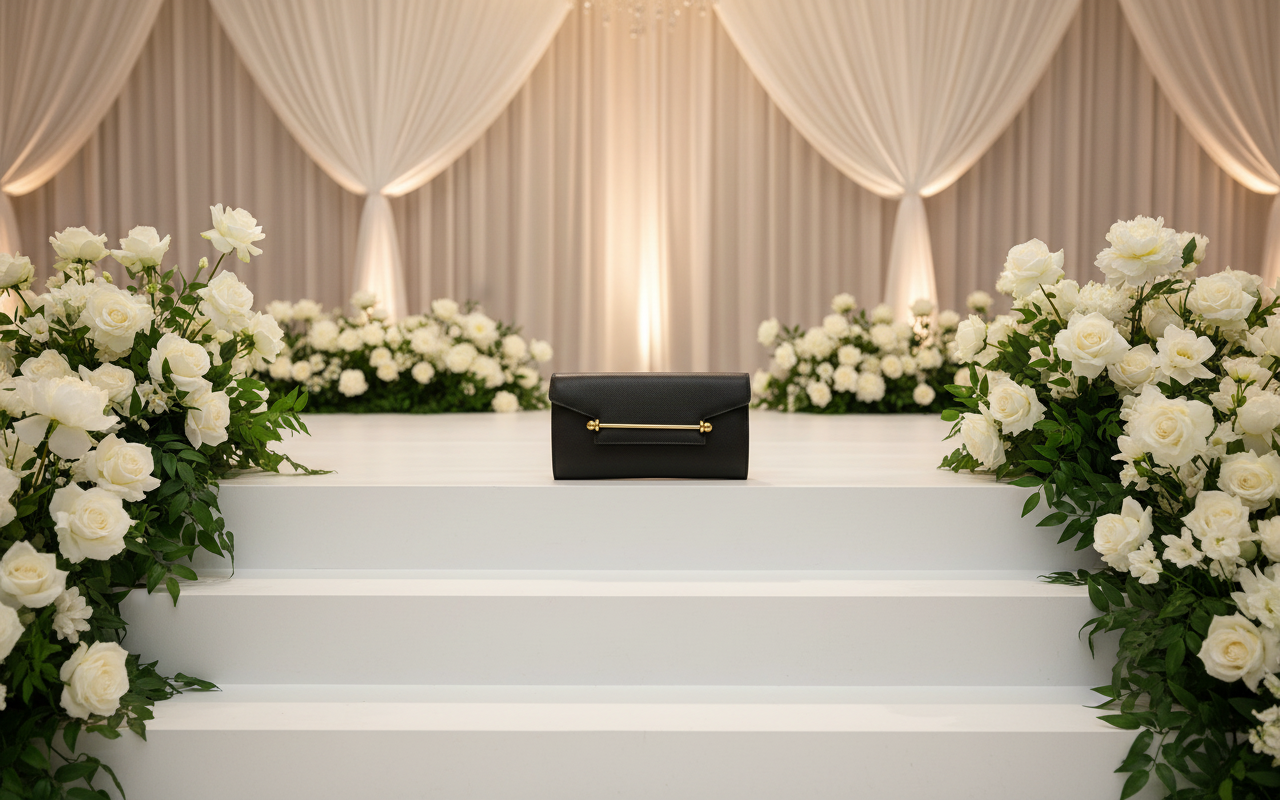 Black Caviar Genuine Leather w Thin Gold Bar Evening Bag