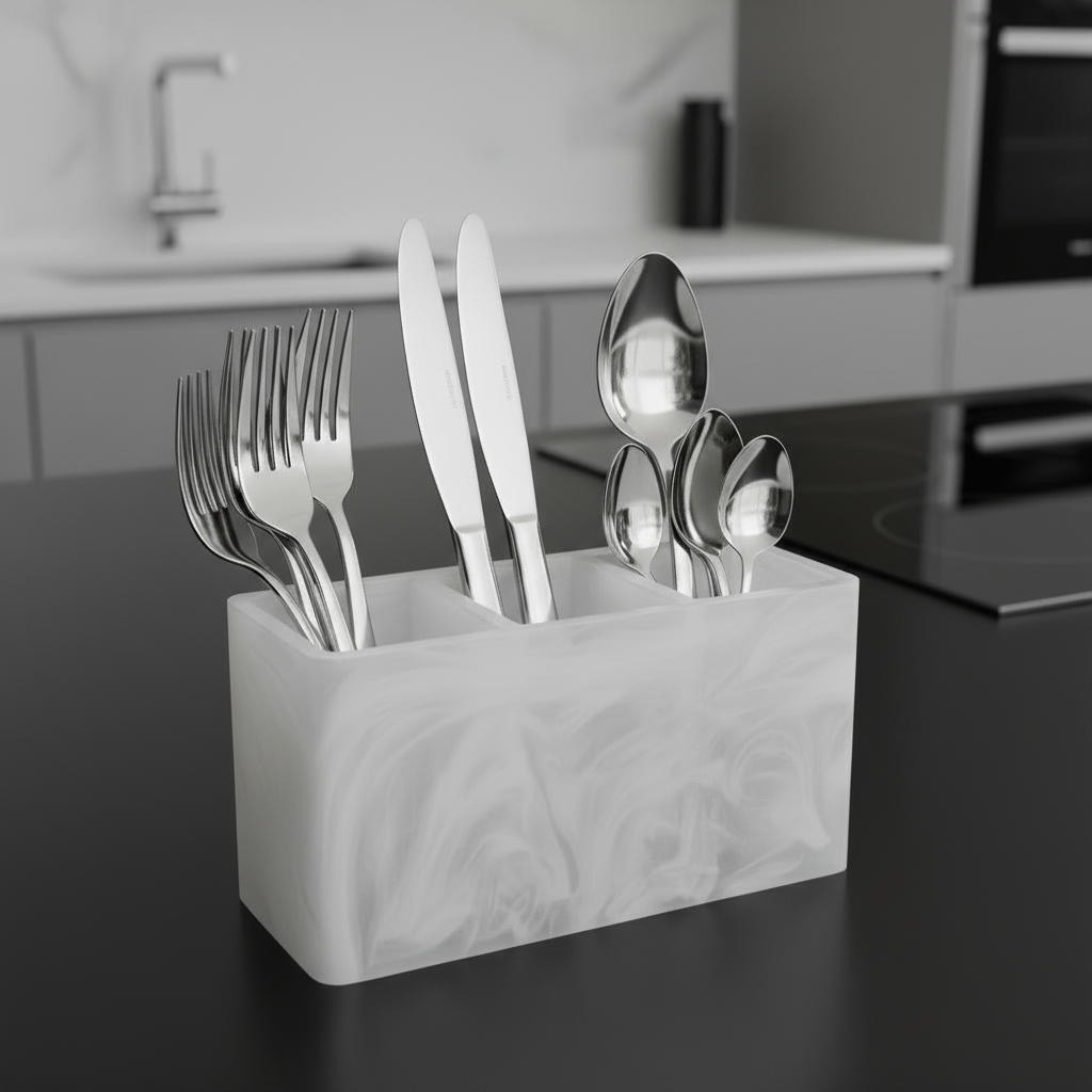 This resin caddy provides effortless organization in a sophisticated and stylish manner. It features an elegant white swirl pattern making it a luxurious addition to any space.