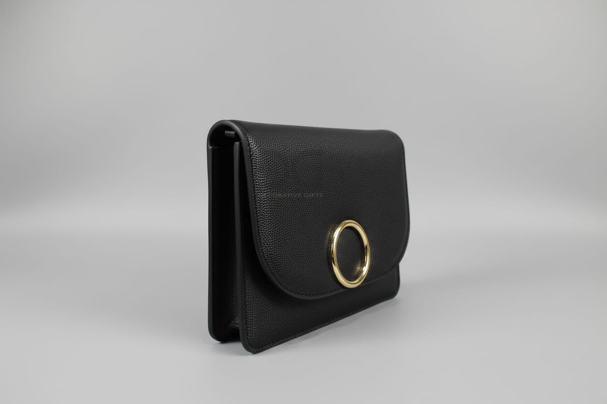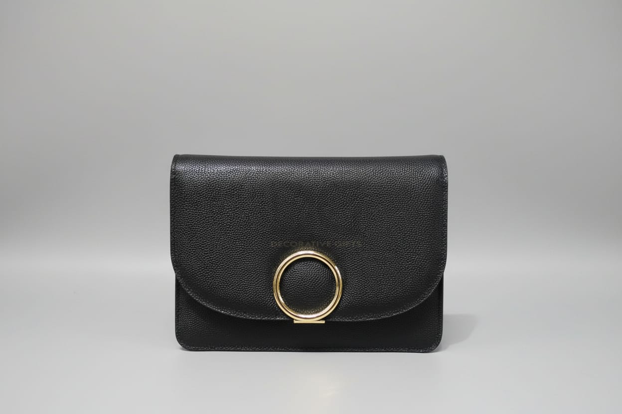Black Caviar Leather Evening Bag with Gold Circle Ornament