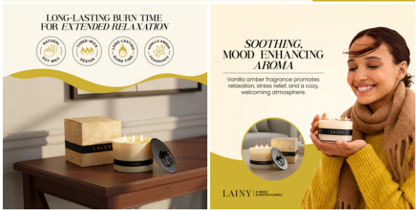 • Luxurious Vanilla Amber Scent: This 12.35 oz soy wax three-wick candle fills your space with a rich, warm vanilla amber fragrance, perfect for relaxation and unwinding.