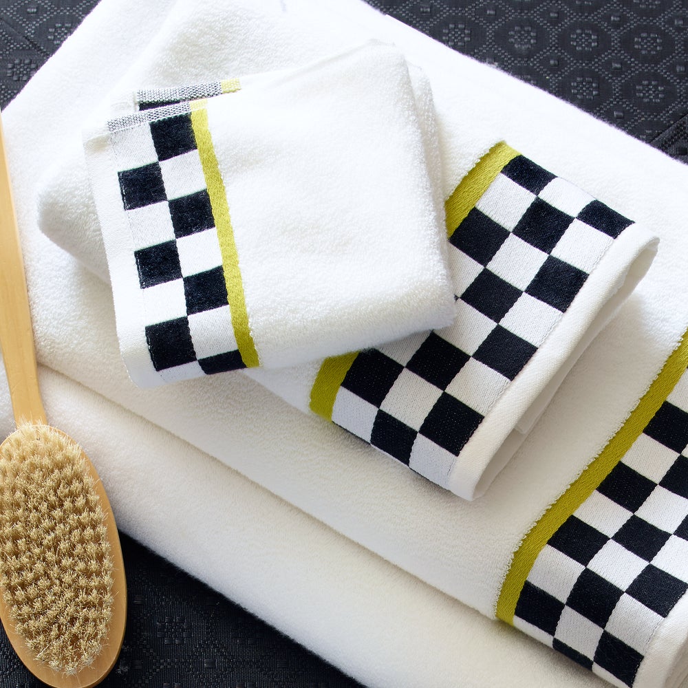 Ready to make a splash? Our smart, sophisticated Black & White Check Hand Towel, made of 100% cotton terrycloth, is trimmed with our signature checks and a stripe of bright chartreuse. Give your bath an instant makeover and turn scrubbing up into something spectacular.