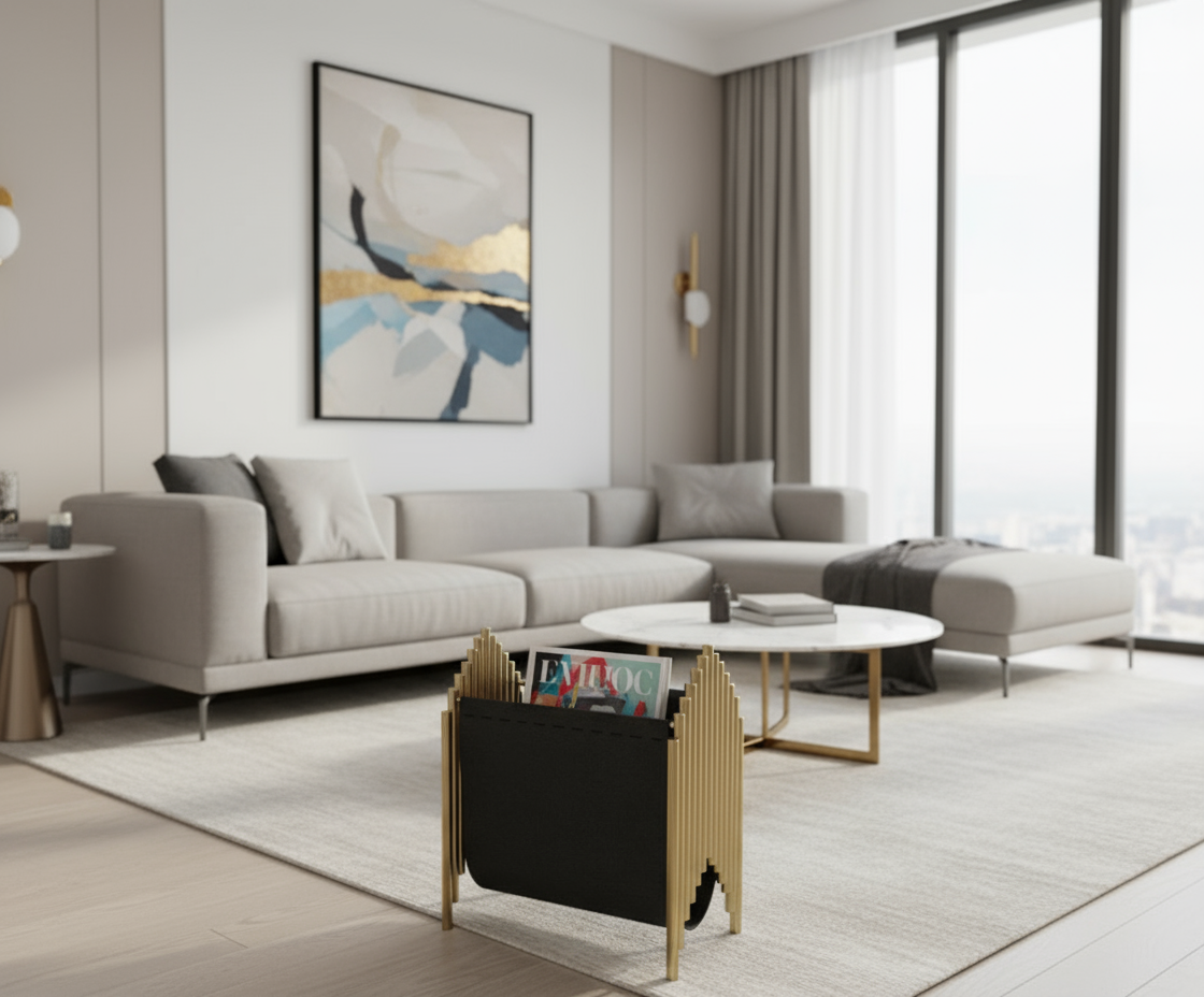 Immerse your space in sophistication with our Pillar Collection’s premium pu leather and metal magazine rack. Recognized for its exceptional craftsmanship and timeless style, it effortlessly enhances your surroundings, adding an enduring touch of elegance