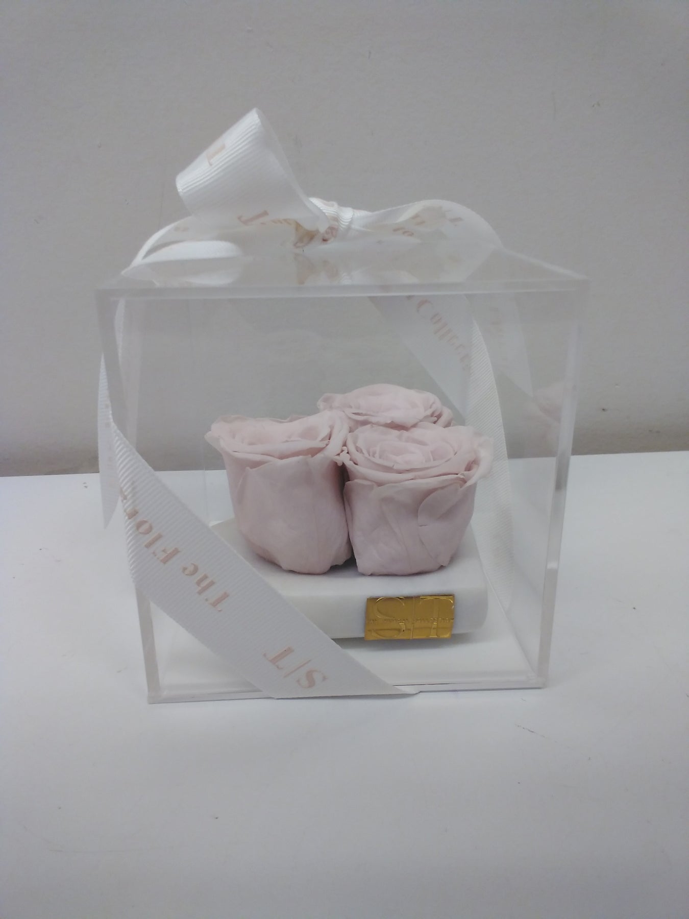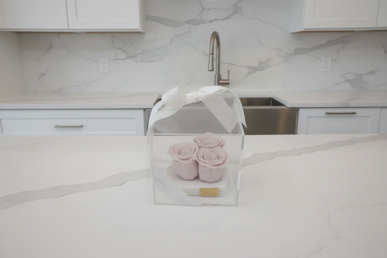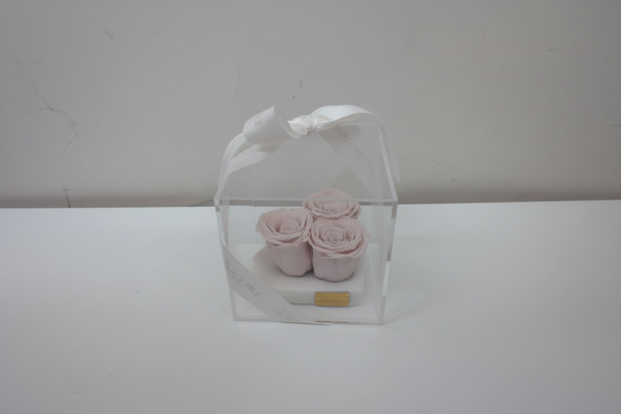 Marble heart dish with 3 light pink preserved roses