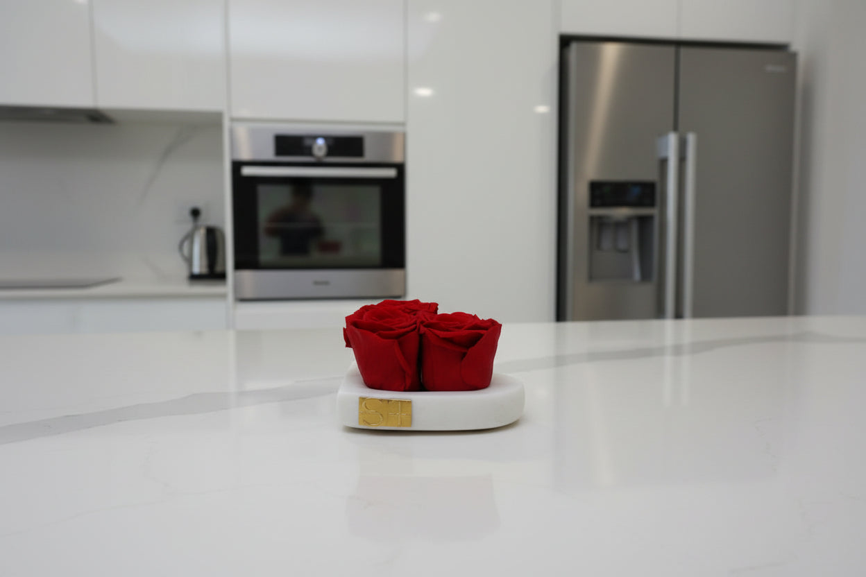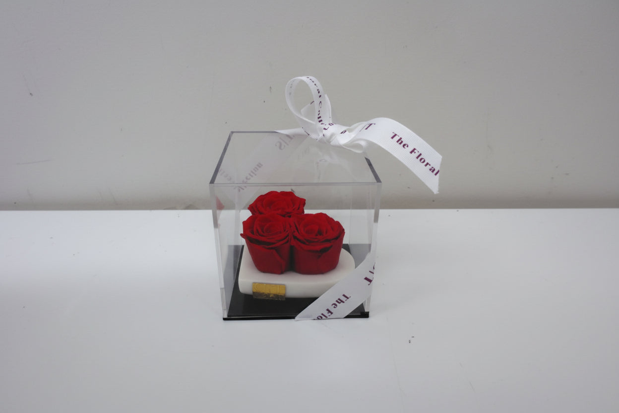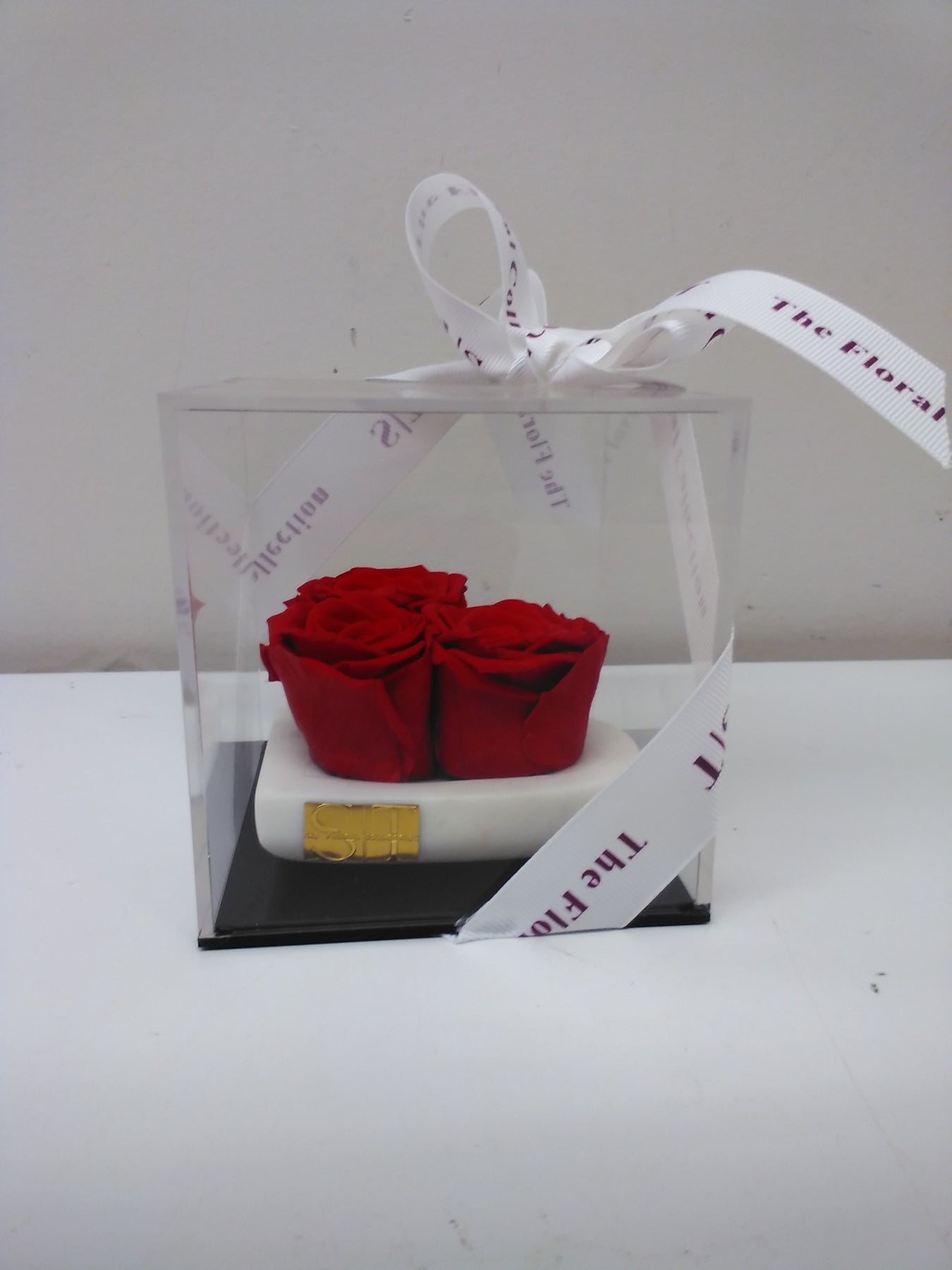 Elevate your gifting with this stunning marble heart dish paired with three luxurious red preserved roses. The elegant heart-shaped dish features natural marble veining, perfect for displaying on a shelf. Each rose is carefully preserved to maintain its rich crimson color and velvety texture, lasting months without wilting. Presented in a sleek acrylic box, it's ready to impress—ideal for anniversaries, , or any occasion that calls for timeless romance and sophistication.