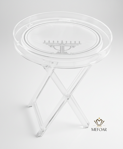 Acrylic Chanukah Round Folding Table with Removable Tray-SILVER Insert