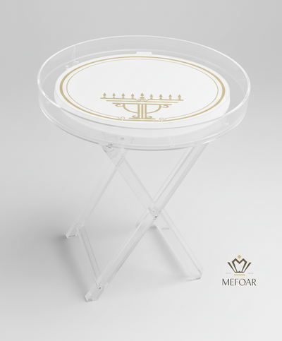 Acrylic Chanukah Round Folding Table with Removable Tray-Gold Insert