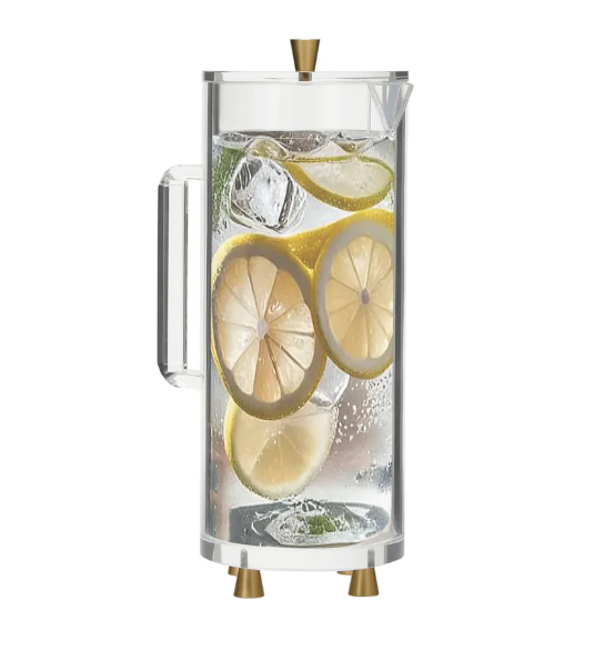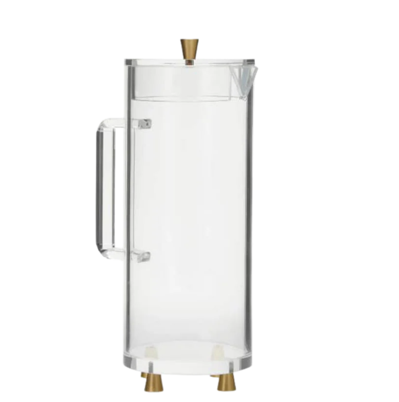 Elevate your dining experience with our Acrylic Pitcher on legs. Crafted with beautiful acrylic material and sturdy gold legs, this pitcher adds a touch of sophistication to your table setting. Perfect for serving your favorite beverages in style.