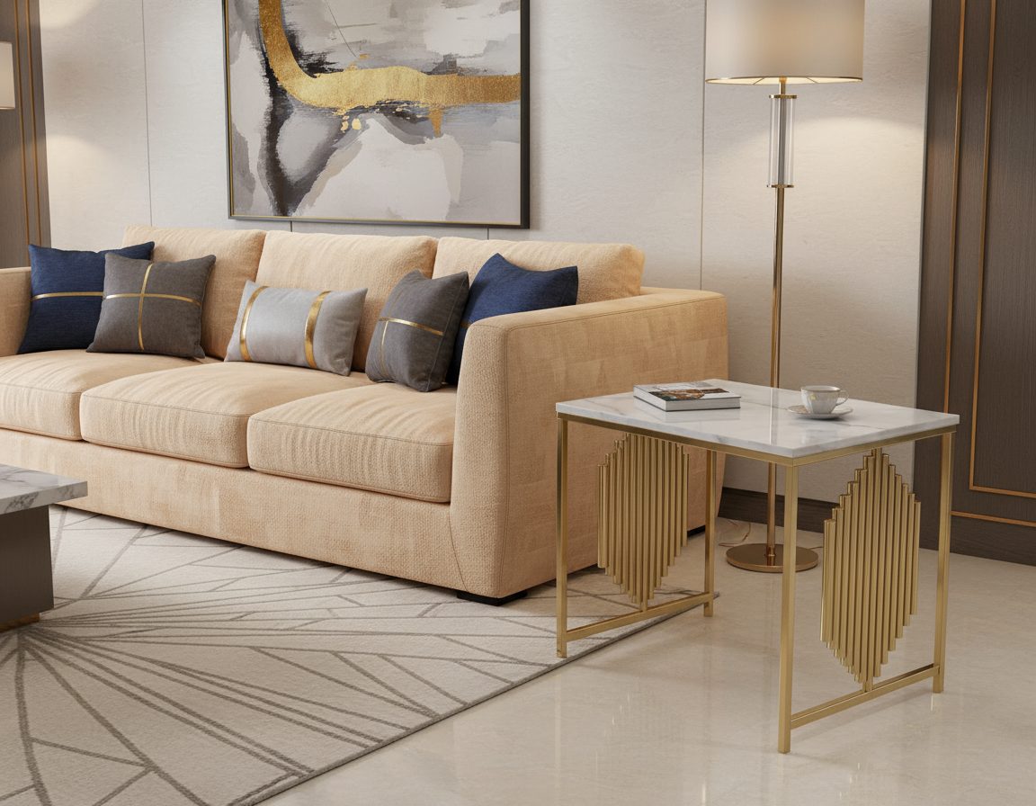 This marble top accent table, offers the ultimate combination of elegance and convenience in your home. Whether used on its own or in combination with other furniture, this end table introduces a touch of modern sophistication to your indoor decor, enhancing the overall ambiance.