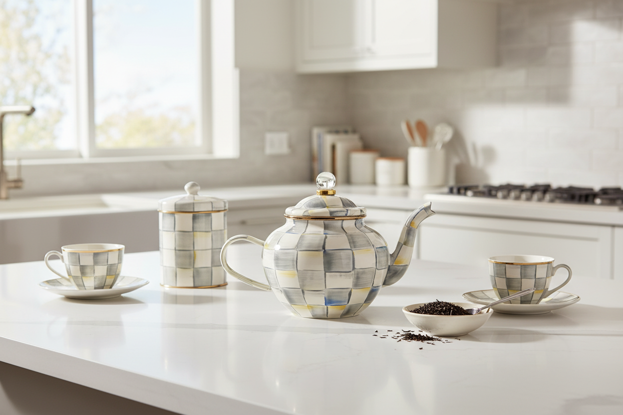 MacKenzie-Childs 32 oz. Sterling Check Enamel Teapot