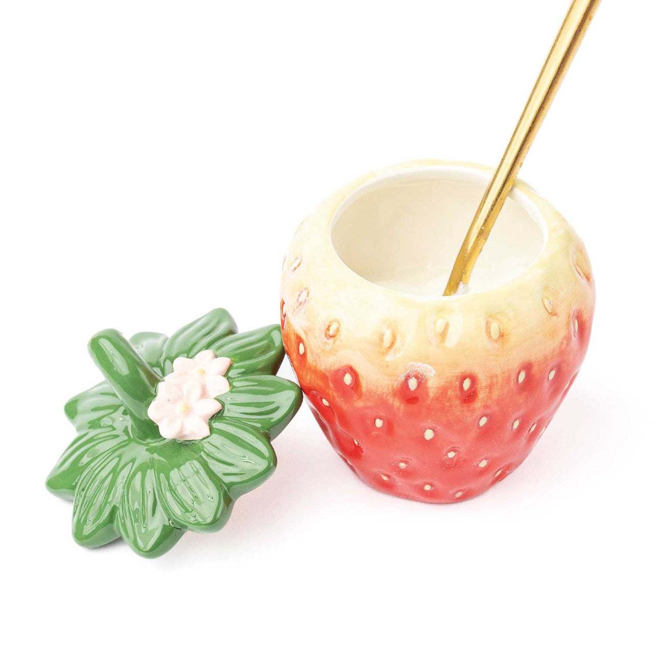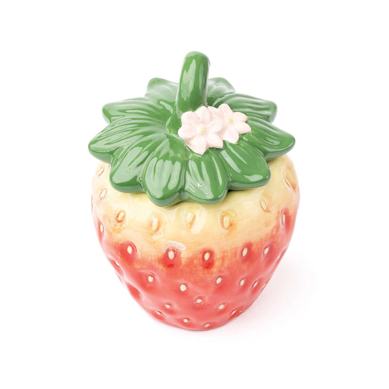 Sweeten up your space with this whimsical Strawberry-Shaped Ceramic Jar with Lid, a delightful blend of charm and functionality. Crafted to resemble a perfectly ripe, garden-fresh strawberry, this jar captures every detail—from the glossy red finish and textured seeds to the leafy green lid that completes the playful design. It’s a piece that brings a cheerful pop of color and personality to any kitchen, pantry, or tabletop.