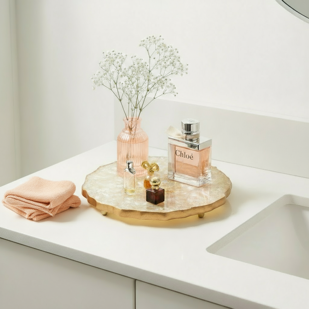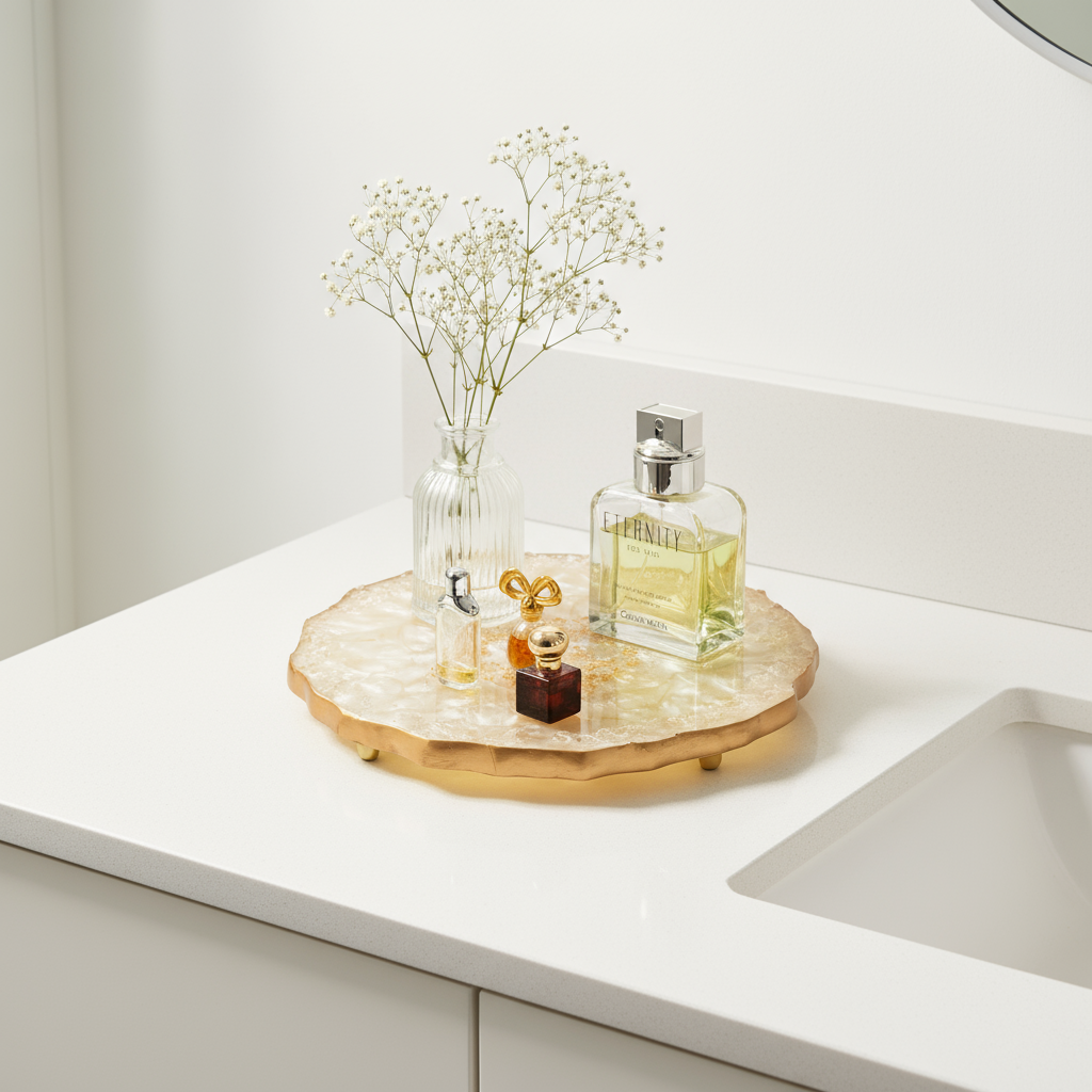 Display your finest items with understated elegance using this 10" round resin tray in warm ivory. The smooth, durable resin construction resists staining and moisture, making it ideal for serving, organizing, or styling shelves and tables. Its generous diameter accommodates everything from appetizers to decorative objects, while the neutral tone complements any interior aesthetic. A sophisticated accent piece that combines practicality with refined design.