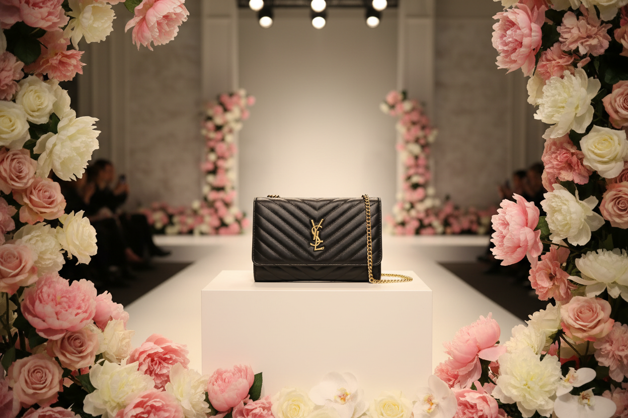 Black Quilted Saint Laurent Gold Logo Evening Bag